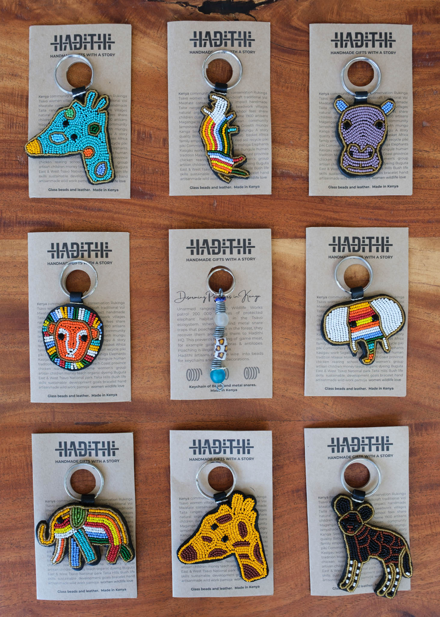 These playful animal keychains are handcrafted using colourful glass beads intricately stitched onto durable leather. Inspired by African wildlife, each design is full of character and vibrant detail. Finished with a strong metal ring, they are made to last and add a joyful, handmade touch to keys, bags, or gifts.