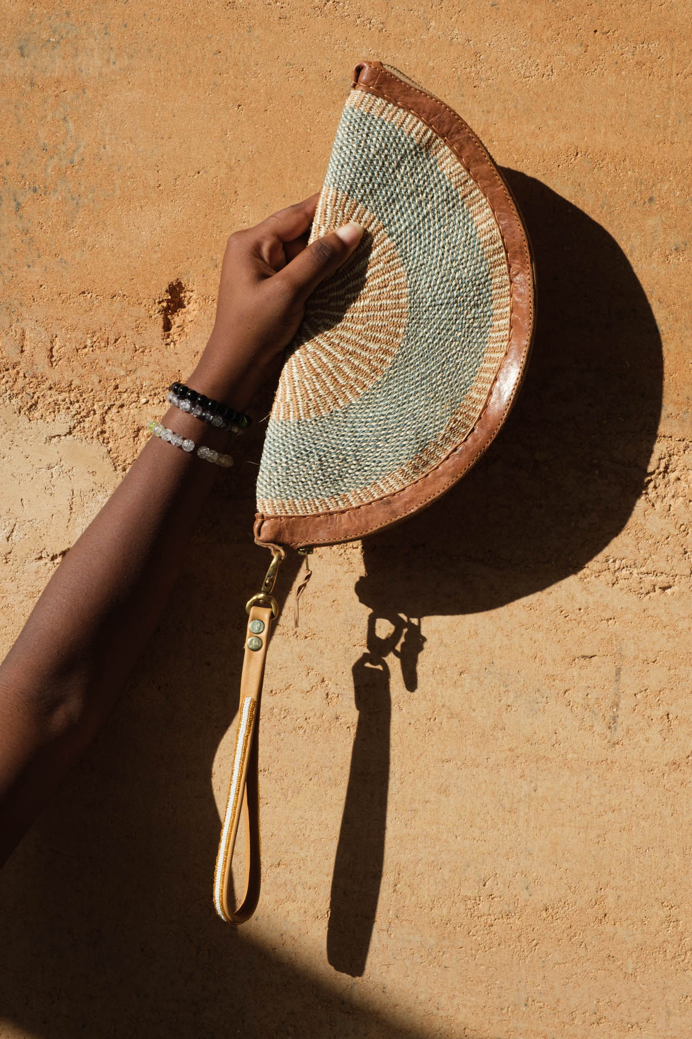 A handmade fine weave clutch zipper with beaded strap, lined inside with 100%cotton and a zipper. our product with the highest impact. It takes the efforts & skills of as many as 6 artisans, to create this unique and meaningful piece.