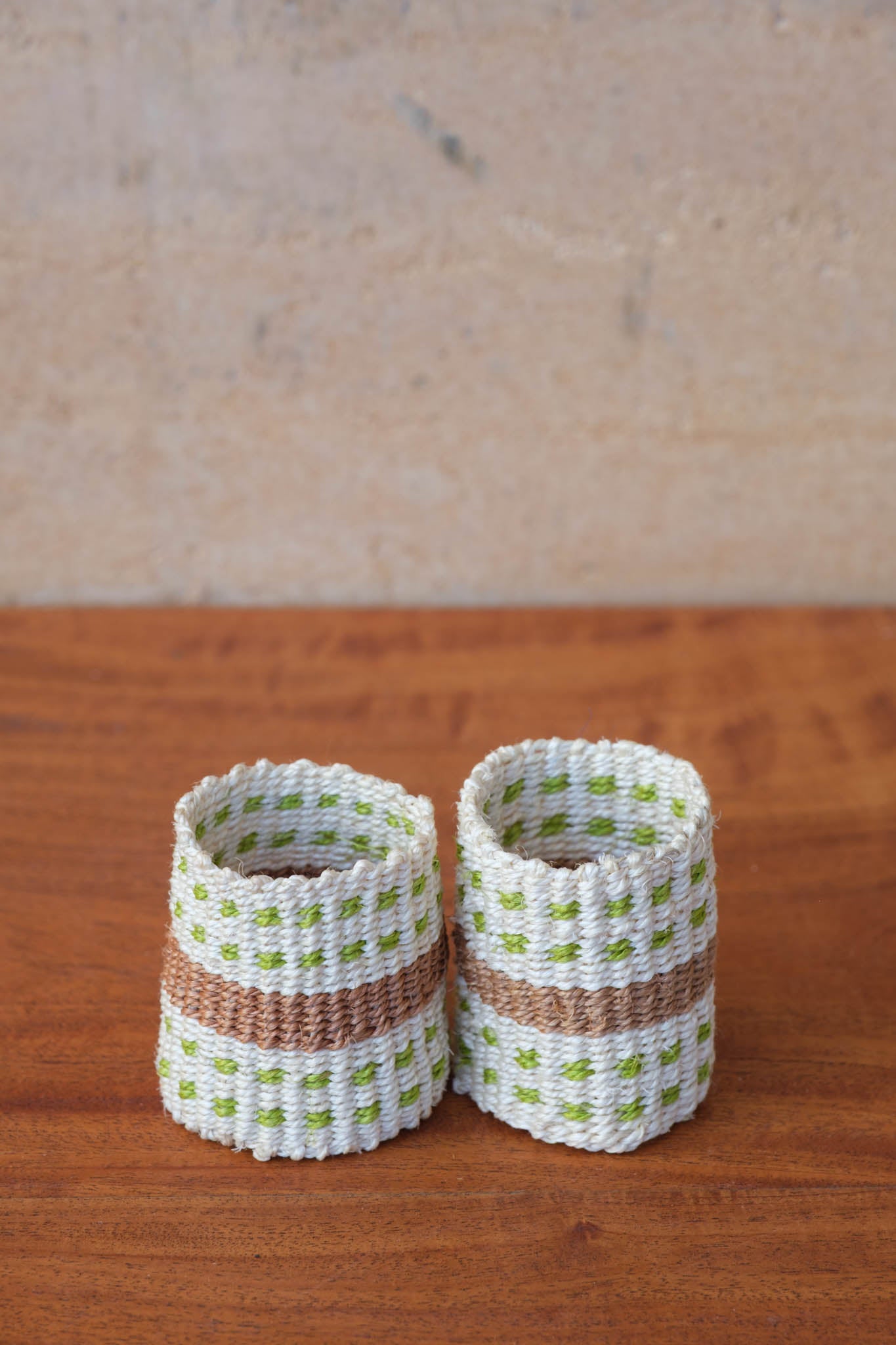 Napkin rings in pairs, woven from sisal in Dotty design.